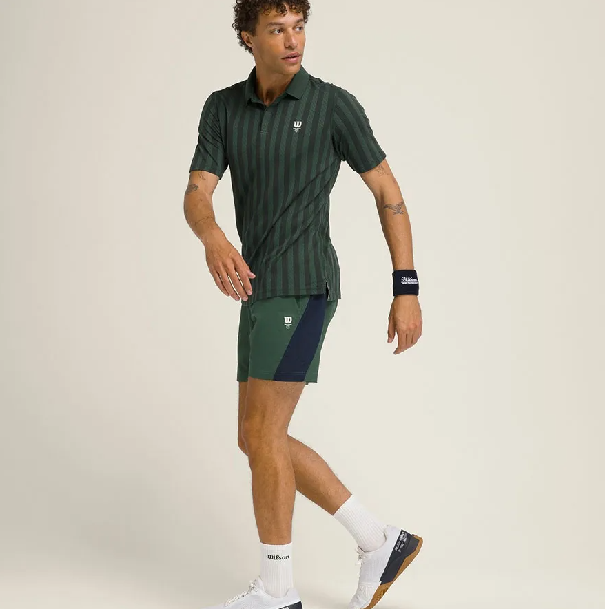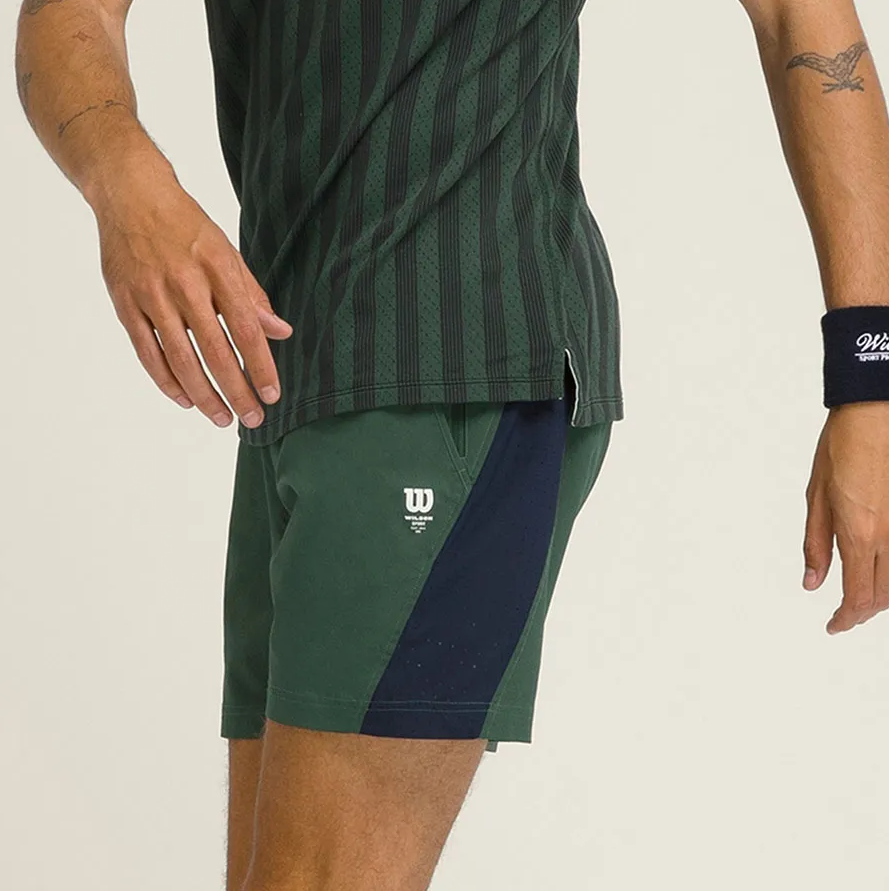 Set Bộ Quần Áo Thể Thao Cộc Tay Tennis Pickleball Nam Wilson Men’s Game Point Seamless Màu Xanh Lá Phối Sooc Navy